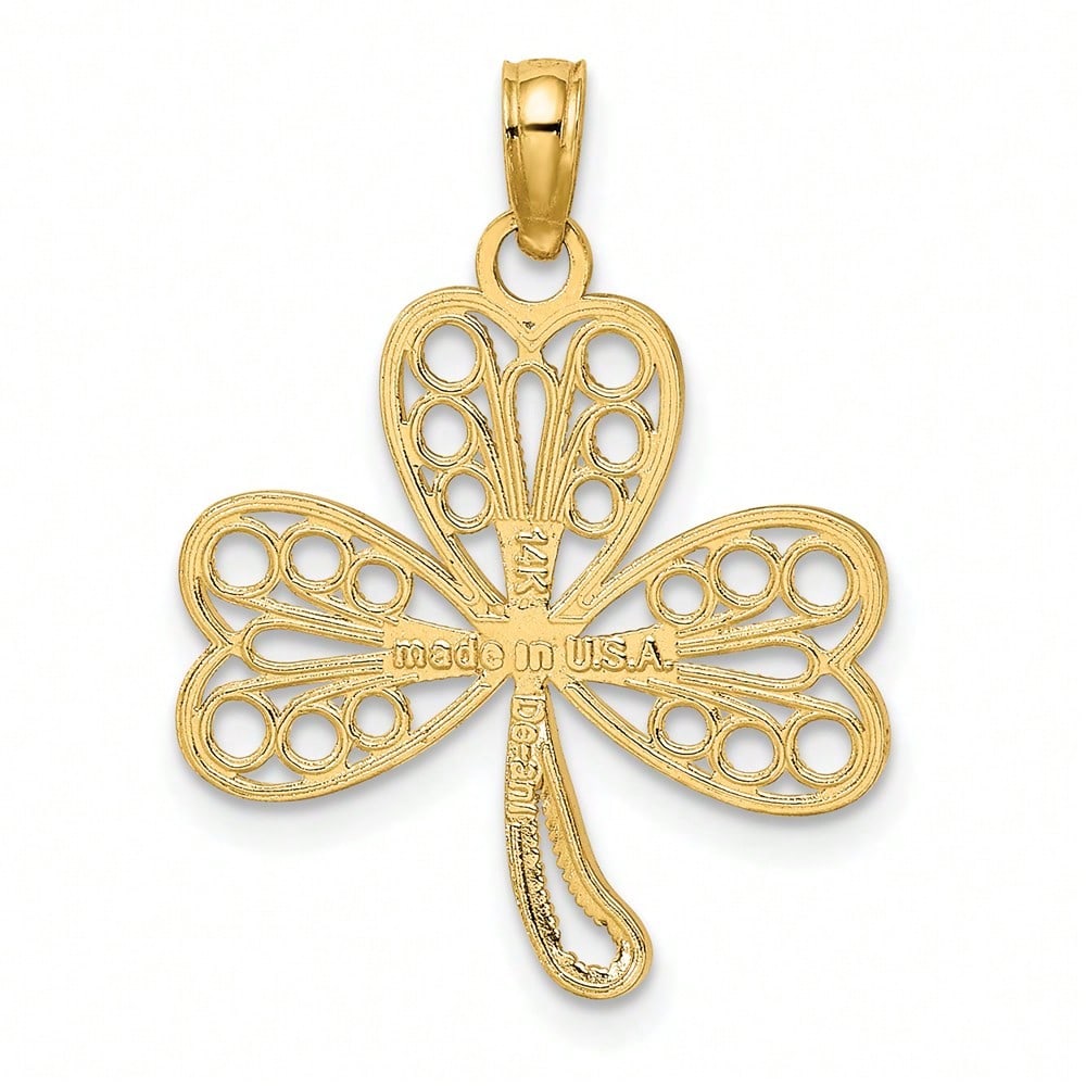 14k Yellow Gold Filigree 3-Leaf Clover Charm Pendant (L-0.88 Inch,W-0.73 Inch) 0.97 Gram