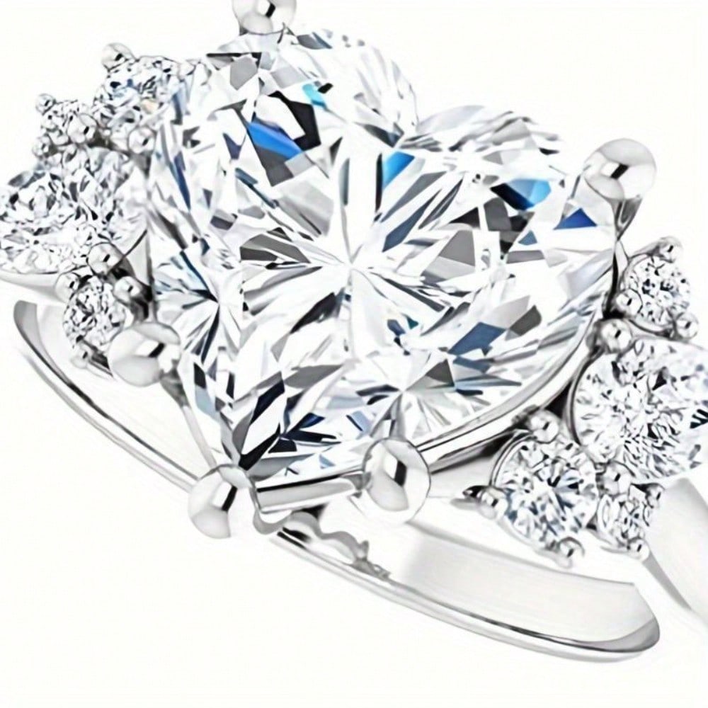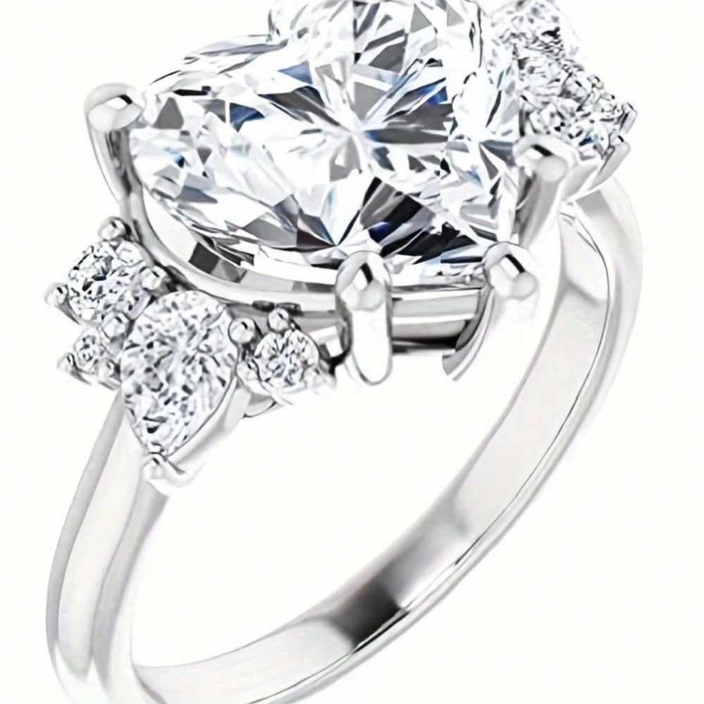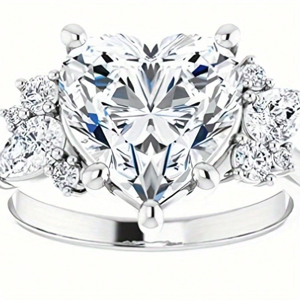 5CT Heart-Shaped Colorless Moissamite Engagement Ring, Wedding Bride Ring, Eternal Sterling 925 Silver Solid Anniversary Promise Ring