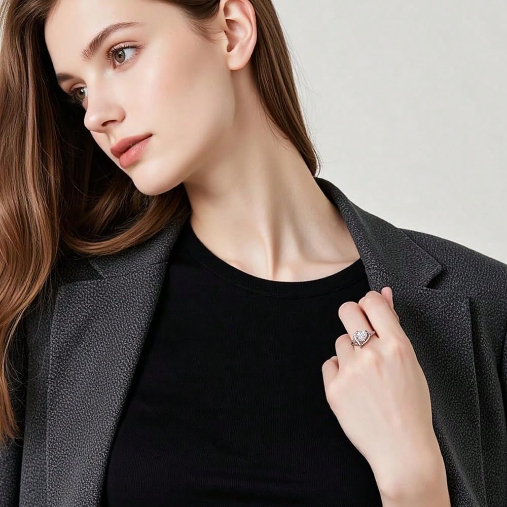 Engagement Rings For Women AAA+ Heart Cubic Zirconia Promise Rings For Her Black Halloween Jewelry/1.5CT Moissanite Rings Women's Wedding Statement Ring Birthday Gifts For Women, Size 5-9-7637