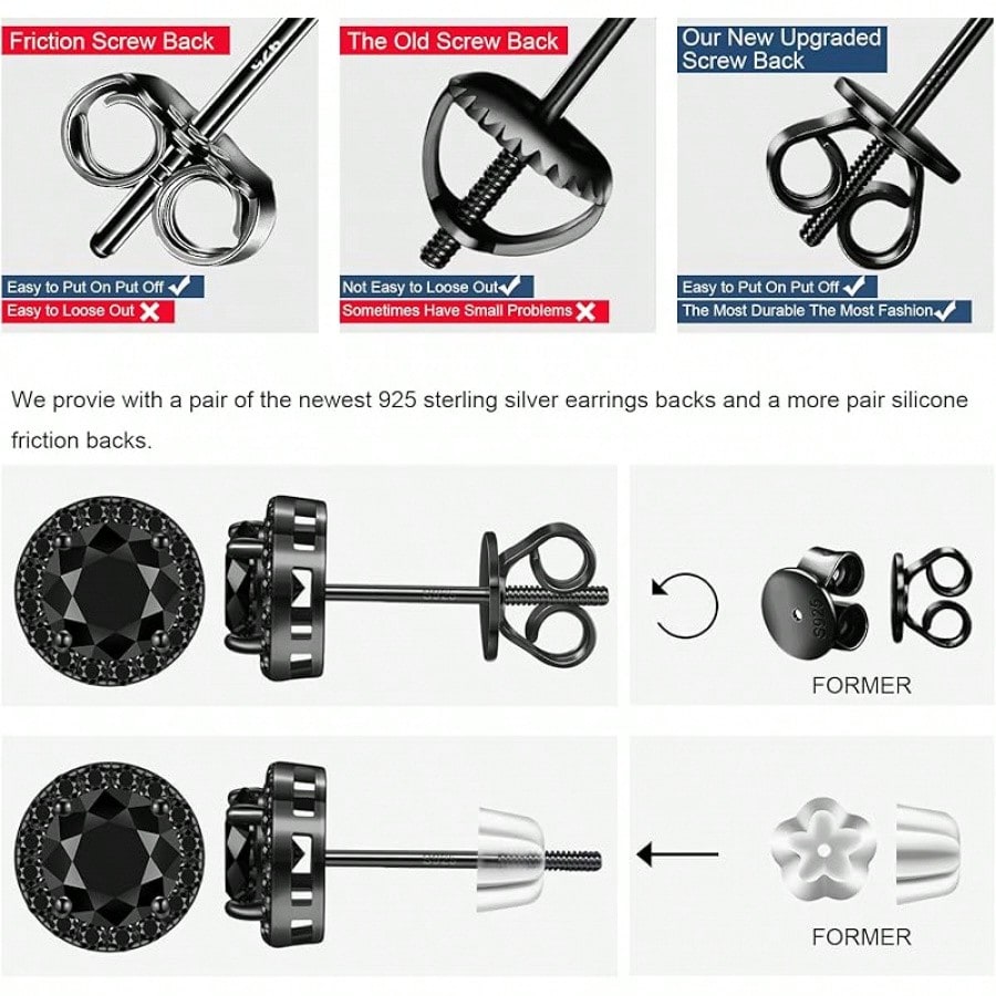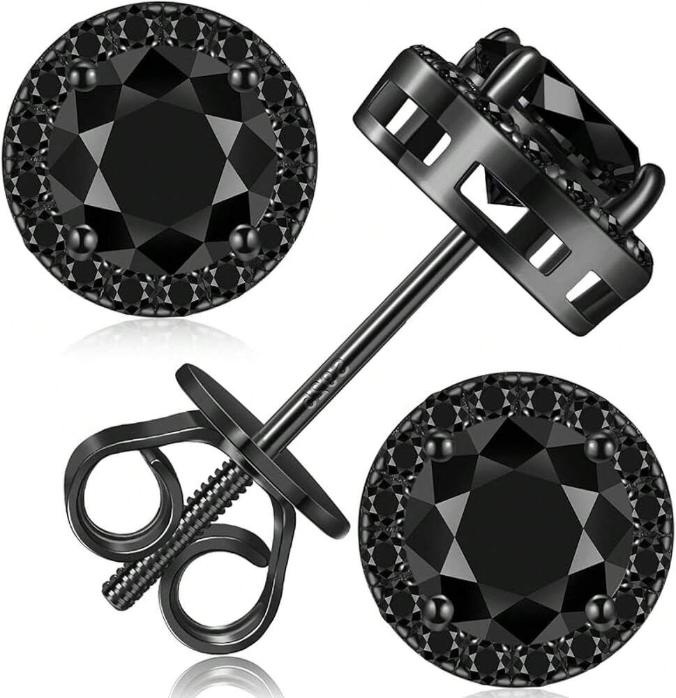 EWAJFBVMoissanite Halo Earrings Stud Screw Back 0.2-8.0ct 3-10mm 18K White Gold Plated 925 Sterling Silver Lab Round Cut Brilliant Moissanite Halo Earrings Women Men