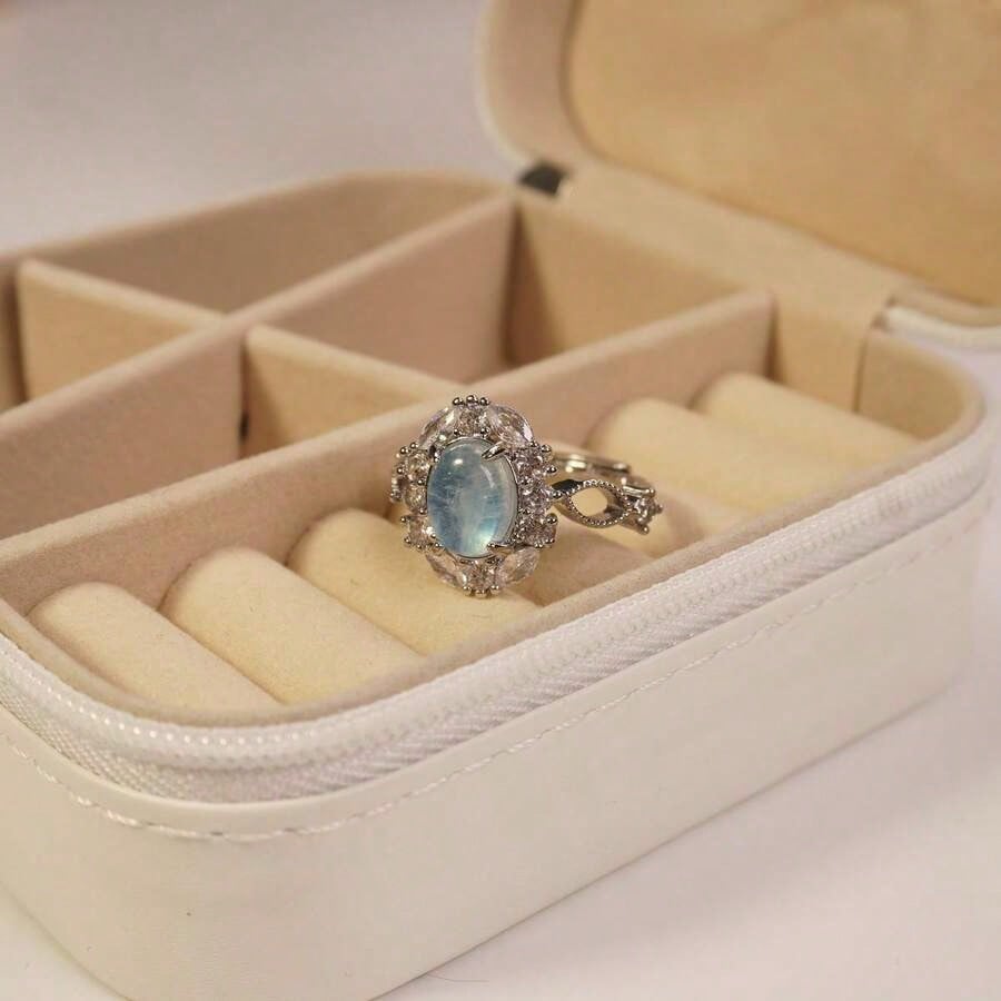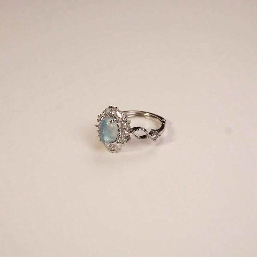 Light Blue Gemstone Ring Women's Open Adjustable Ring Suitable Daily Wear And Giving