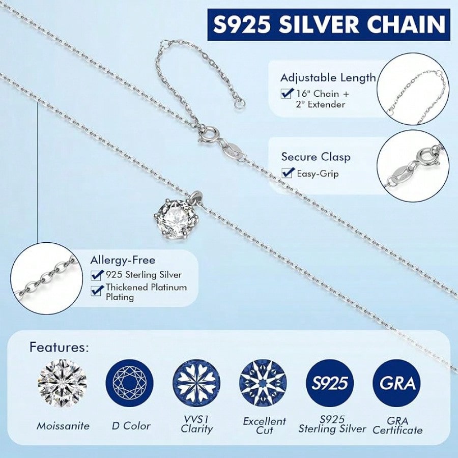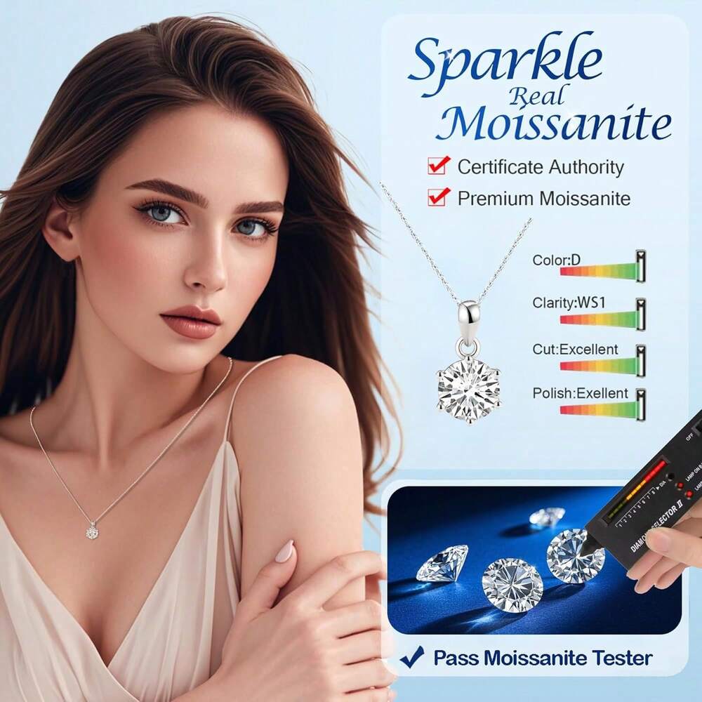 Moissanite Pendant Necklace In 925 Sterling Silver, 1-5CT