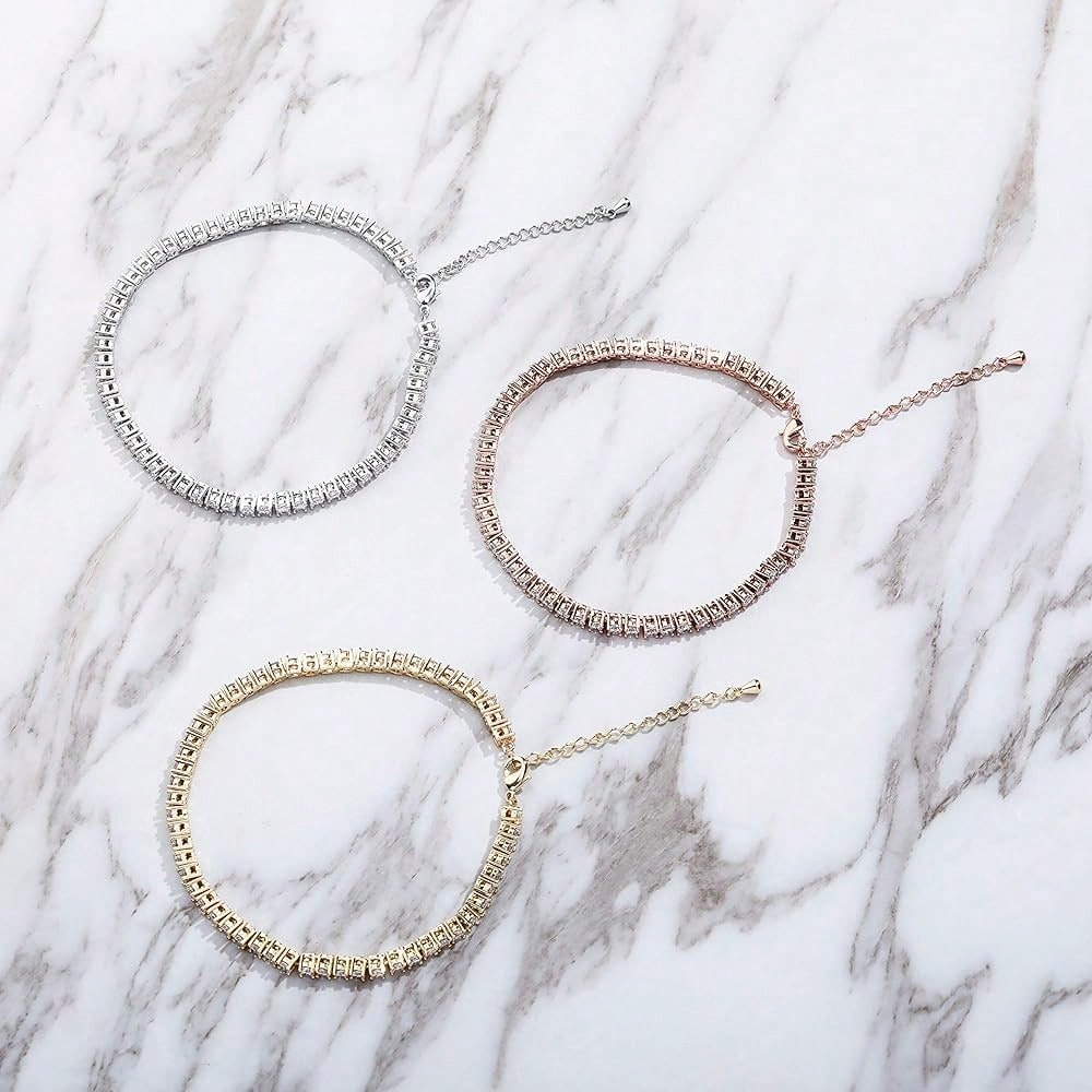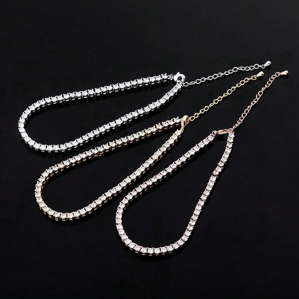 TOPGRILLZ Tennis Ankle Bracelet Gold Anklet Adjustable With Extension 14K Gold Plated Iced Out Diamond 3-6mm Fashion Stylish Foot Jewelry For Women-1825